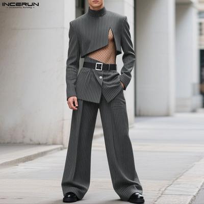 Men Two-piece Suits Long Sleeve Irregular Suit Tops Straight Pants