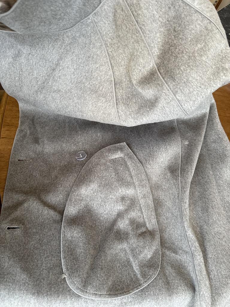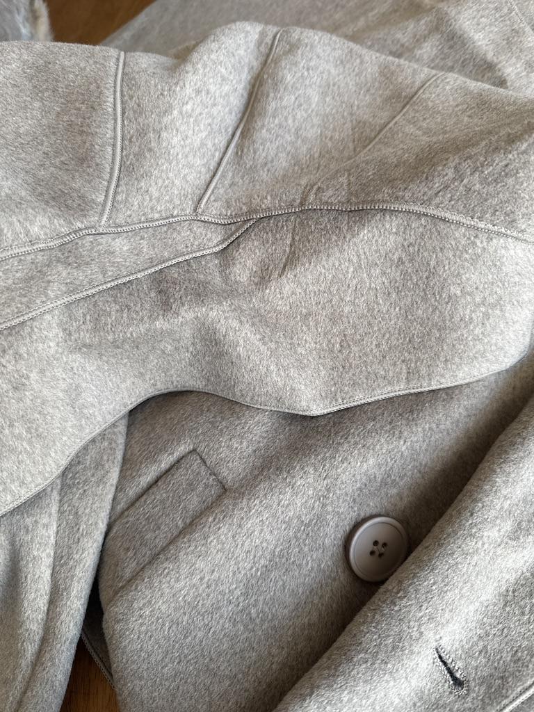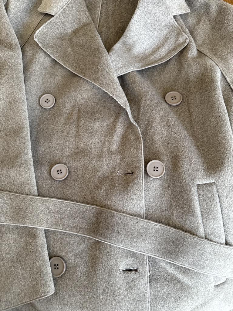 I think I could have ordered a large, as the coat is quite wide in the back. Also, the color isn't what I ordered; I can't describe it, but it's definitely not gray, but some kind of light gray-beige. Now I'm wondering how to play it up. If I just tie the belt, the back will look like a sheaf. Without the belt, the front isn't the same style! Overall, I guess I'd say this: what do you expect for this price? Sorry, but that's true! The length is just right; I'm not tall or wide-hipped, so...