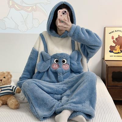 Women's Pajamas Sets Hooded Nightgown Plush Coral Fleece Sleepwear Women Winter Thicken Pyjamas Suit Cartoon Home Outerwear New