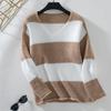 New Autumn and Winter Casual Sweaters European and American Contrast Striped V-neck Off-shoulder Sweaters for Women