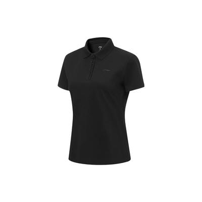 Li Ning Feather Series Solid Color Quick-Dry Short Sleeve Polo Shirt Women Tops Black APLR126-3