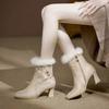 Embroidered Flower Women Leather Ankle Booties High Heeled Fur Lined Vintage Winter Boots for Ladies Short Boot