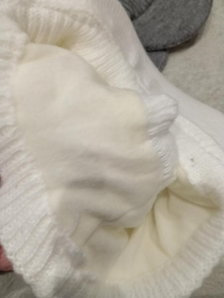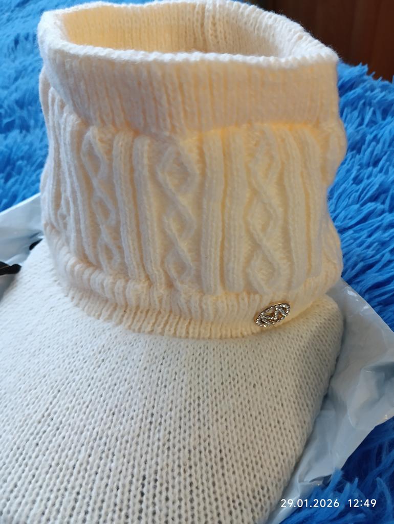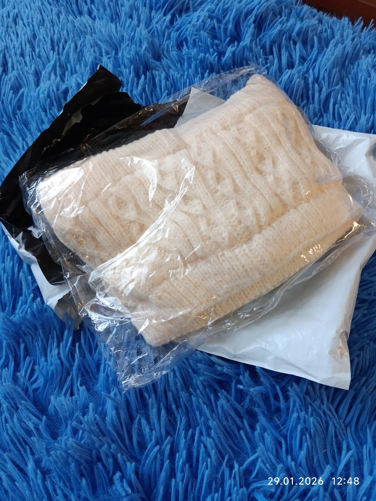 Excellent, just like in the photo, the knit is not thick, inside there's a fabric like fleece, warm. Inside there are plastic inserts, put it on carefully, otherwise, it feels like it might tear the knit over time.