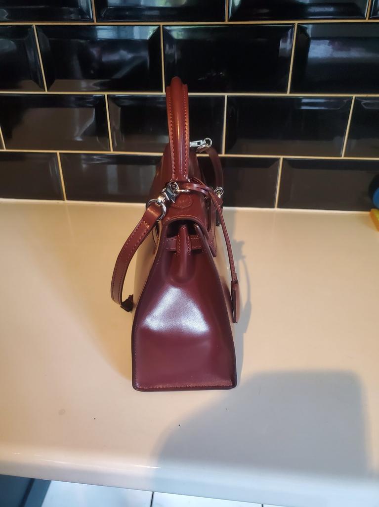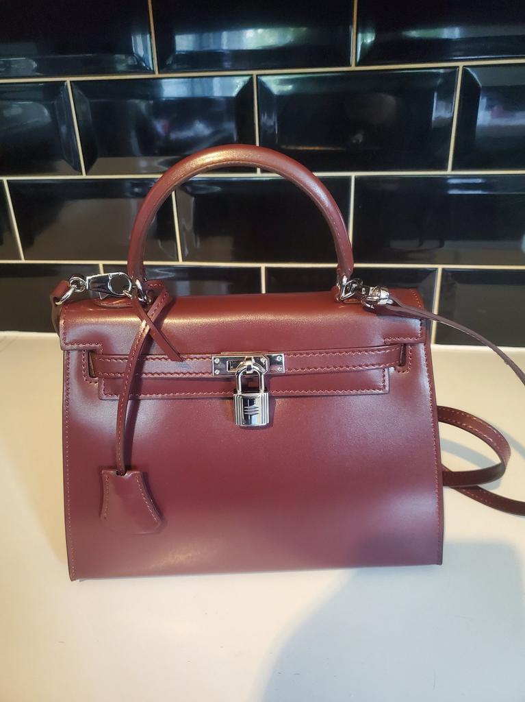 Beautiful bag just like picture this is a size 25 would definitely buy in other colors and came with twilly. Stunning