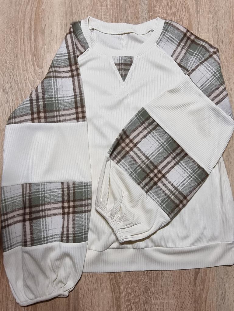 Women's Plus Size Casual Top Loose Plaid Colorblocking Round Neck Sweatshirt Long Sleeve Pullover