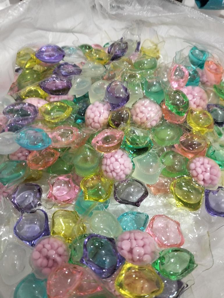 The laundry capsules are excellent, arrived intact, wash well, fit perfectly into the plastic container from Tide and other laundry capsules. Satisfied and recommend.