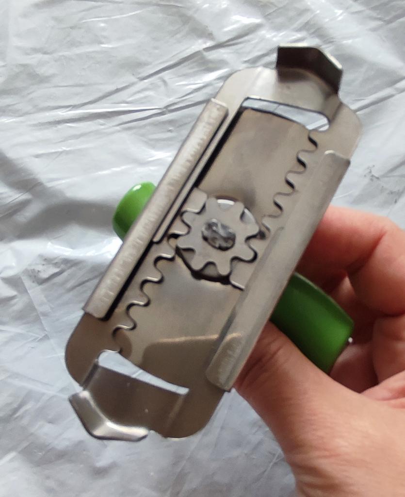 Skips when used, the metal is a tin can. Everything bends, doesn't open. Return the money.