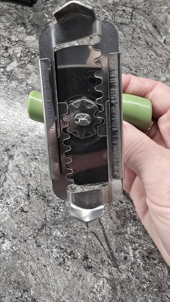 Wasted money. A toy that you wouldn't even give to children, sharp edges. You can't open anything with this device. It doesn't have, neither teeth-stainless steel slides on metal and there is no lever. Plastic ones have both. so they can't be replaced by anything.