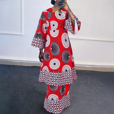Women Plus Size Fashion Round Neck Long Sleeve Printed Top Skirt Sets