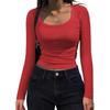 YYFS Women's Fashion Casual Spring Fall Solid Color Print Long Sleeve U-Neck Blouses & Shirts