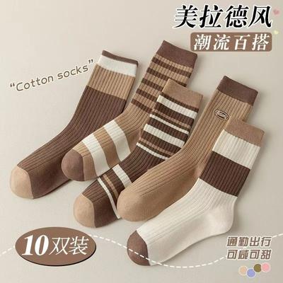 8 Pairs Of Socks For Women'S Maillard Color Versatile Stacking Socks For College Style Brown Mid-Tube Socks 04918