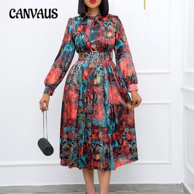 Women's Dress with Belt Spring and Autumn Long-sleeved High-waisted Printed Plus Size Party Dresses