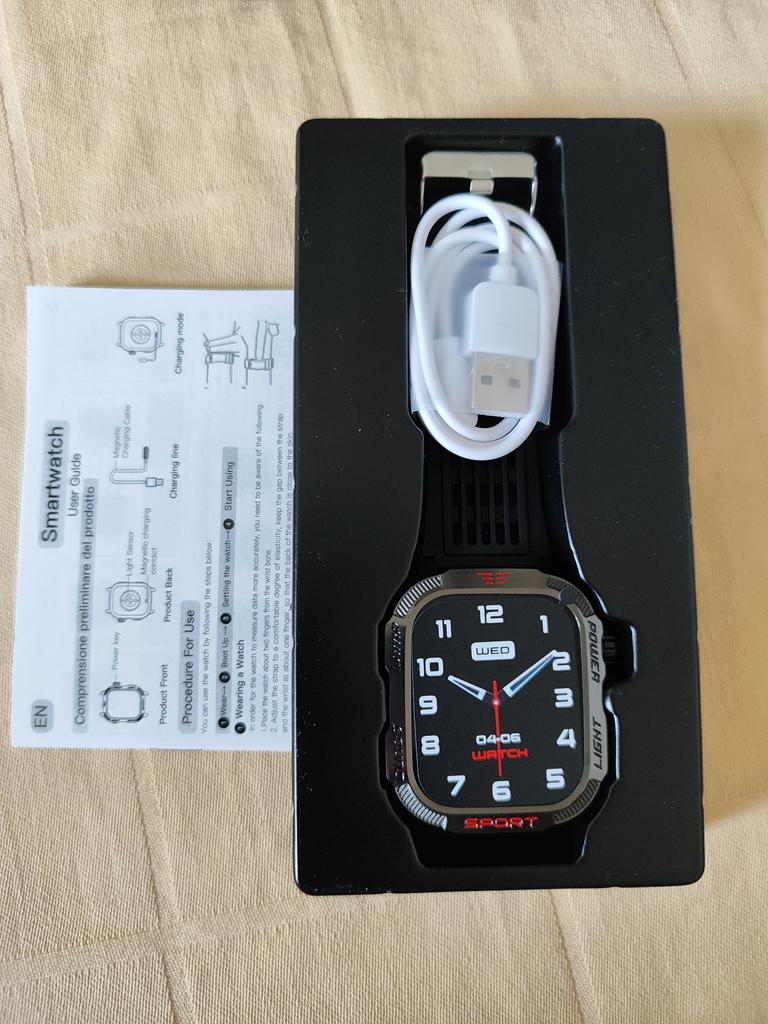 It's great 😊 I'm speechless to describe the article 🤩 Luxurious look 💥 Presentation 🥰 is unbeatable 💥 Ideal for a gift 🎁 or personal use 😜 Extraordinary quality 💯 Super affordable price 🤑 Functions are as complete as they come 😉 100% compatible with an iPhone, no problem at all 👌 Installation and synchronization with the mobile device 📱 is simple 👌 Super water resistant 💧 100% recommended 💯 Correct packaging 📦 It comes well protected 💥 Very fast shipping ✈️ I'm delighted 🥰