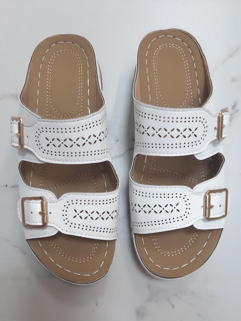 Women's Solid Color Casual Sandals, Platform Slip On Soft Sole Double Buckle Holiday Shoes, Cut Out Wedge Beach Shoes