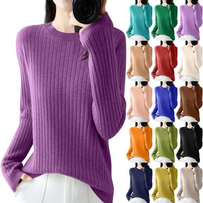 Classic Fashion Style Cashmere Pullover Women Wool Sweater Round Neck Long Sleeve Knitwear Soft Warm Basic' Sweaters Clothing Tops