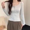 White Half-open Collar Button-down, Long-sleeved T-shirt for Women, Autumn Design, Niche, Non-waist Inner Layering, Bottoming Shirt Top