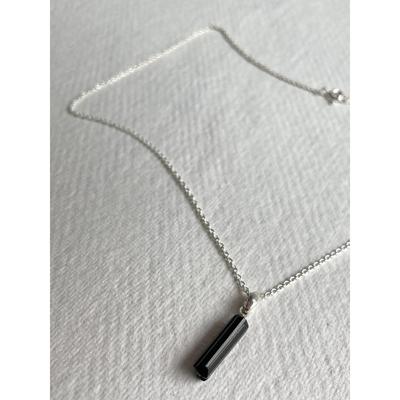 Organic Silver Necklace_ Black Tourmaline Organic Raw Stone Black Tourmaline Silver Necklace