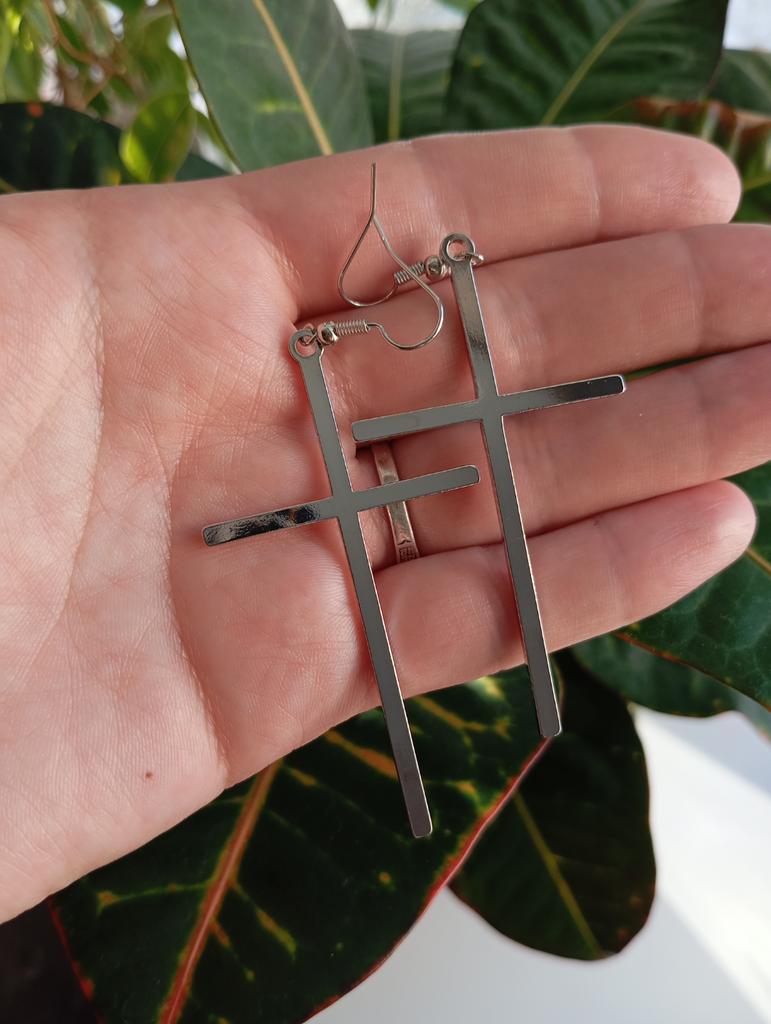 Exaggerated Punk Rock Hip Hop Big Cross Ear Stud Dangle Drop Long Earrings