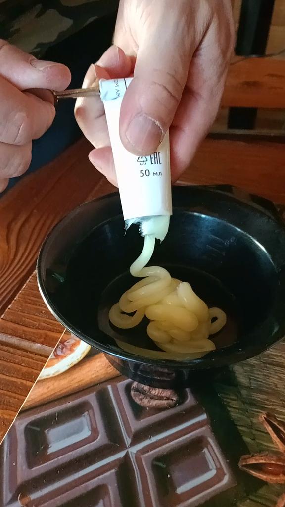 now I squeeze the tube to the end
