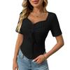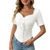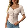 Women's Fashion Solid Color V Neck Pleated Drawstring Sexy Short Sleeved Top
