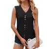 Women's Spring and Summer Short Sleeve T-shirt Button V-neck Loose Vest Top