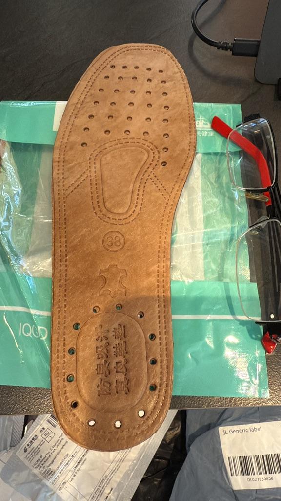 The product is good but the insoles are different in height. One is excellent but the other is punched out from a low-quality piece.