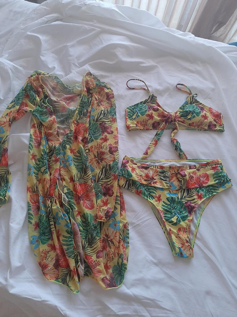 Sexy Women Beach Bikinis Three Pieces Bikini Set Cover Up Swimwear High Waisted Bikini Set Women Swimwear Print