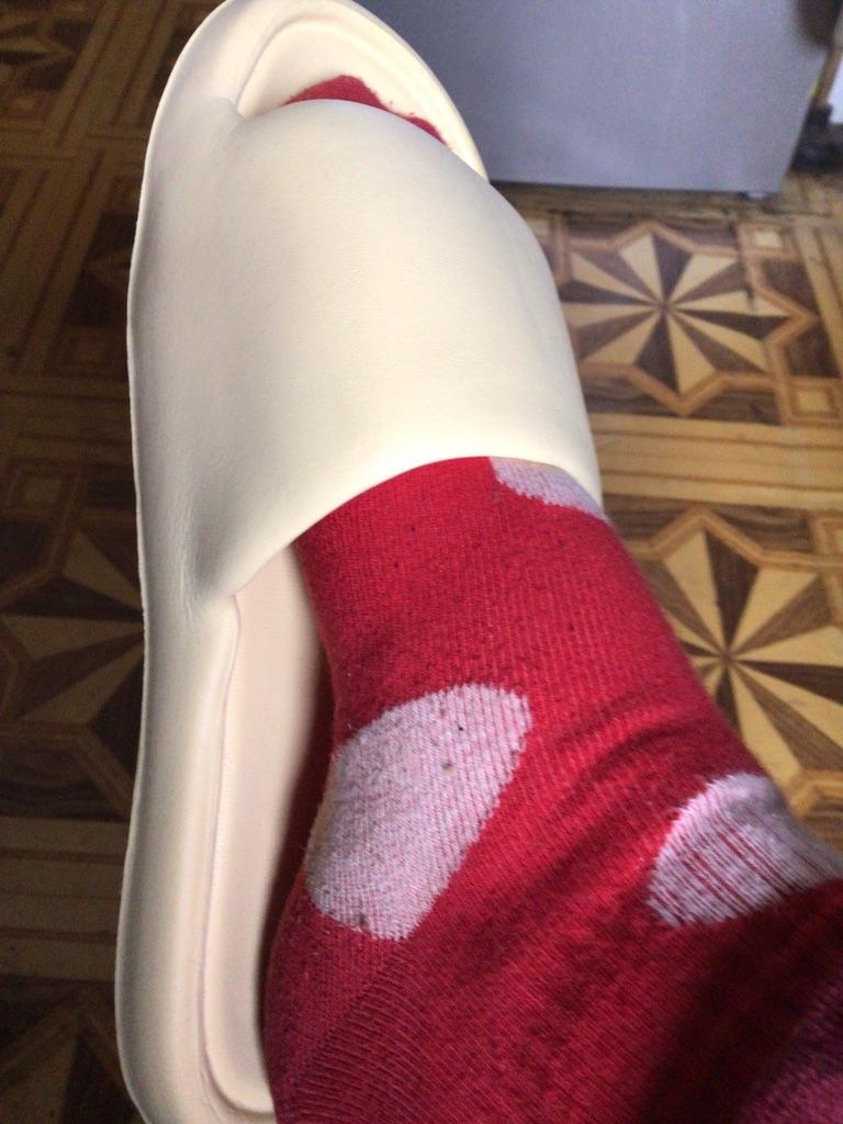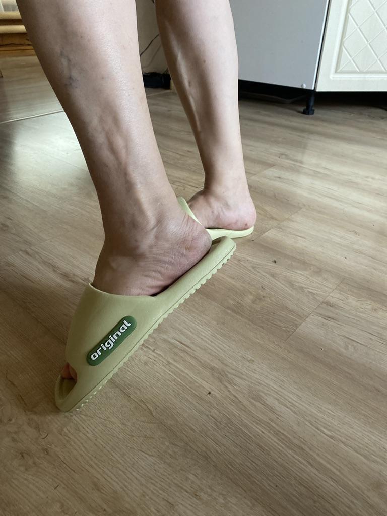 Very cool, soft sole, slightly springy when walking. For a sore heel - just what you need! For a foot size 39-40, size 42-43 fit. Although the slippers are slightly wide for my thin foot. But this doesn't interfere with wearing them