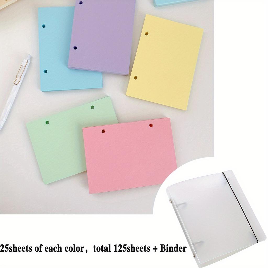 125Sheets Blank Loose Leaf Paper 5 Colors 2 Hole Binder Paper Notebook Filler Paper Binder Inserts, with Binder, 5.8x4.1inch