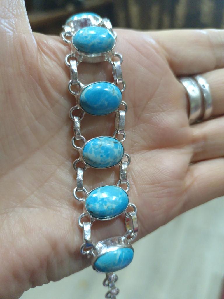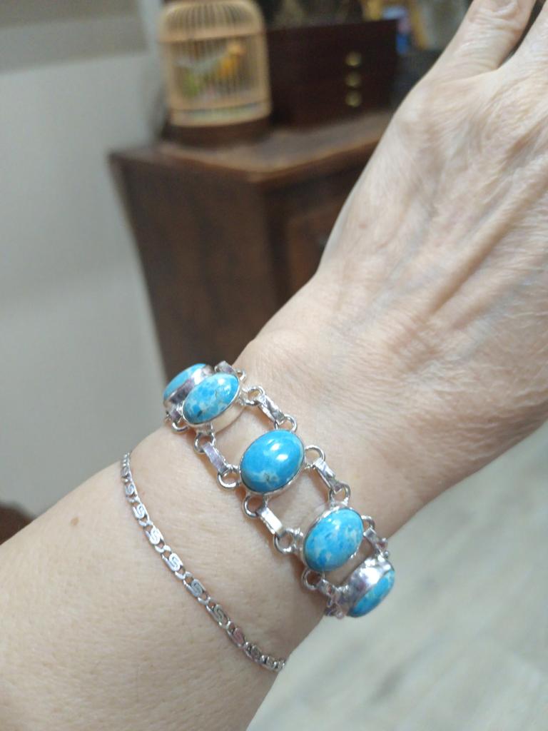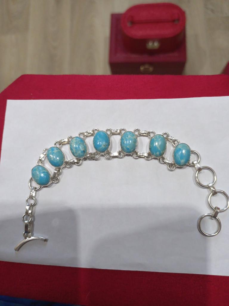 Very beautiful delicate silver bracelet with larimar, as in the photo. The silver hallmark is present. High-quality work, comfortable clasp - toggle. Looks incomparable on the wrist.