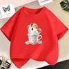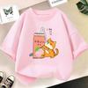 Cotton 100% Cute Cat Drinking Milk Tea Kawaii Clothes Tops Harajuku Funny Cartoon Short Sleeve T-shirt