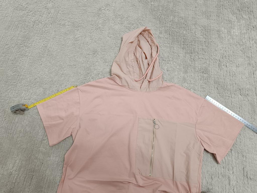 DIMANAF 2025 Plus Size Pullover Hoodie Summer T-shirt Women Asymmetrical Solid Short Sleeve Loose Tees