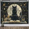 Black Cat Library Tapestry Wall Hanging Occult Witchy Altar Cloth Tarot Tapestrys Aesthetic Bedroom Decor Printed Tapestries