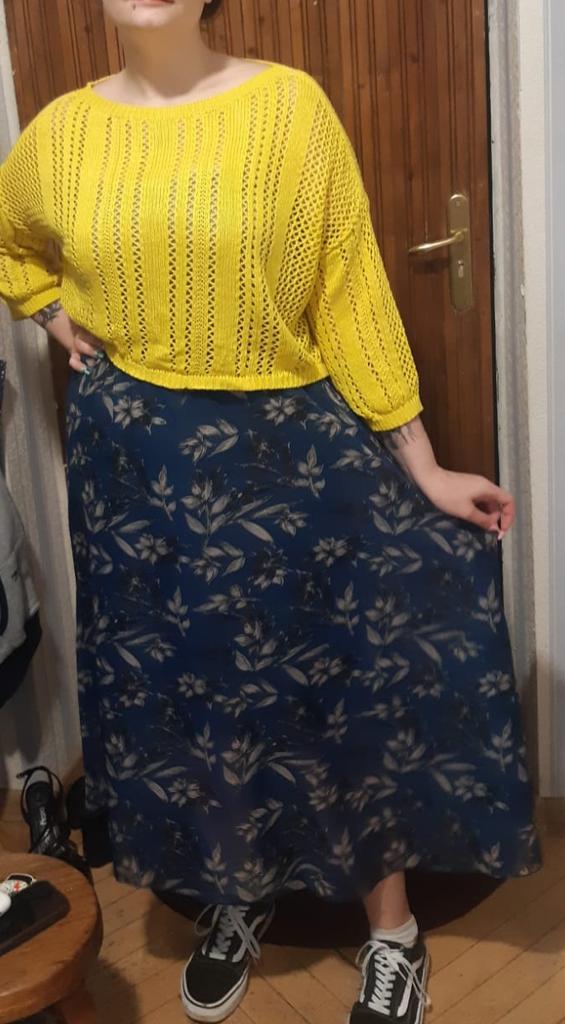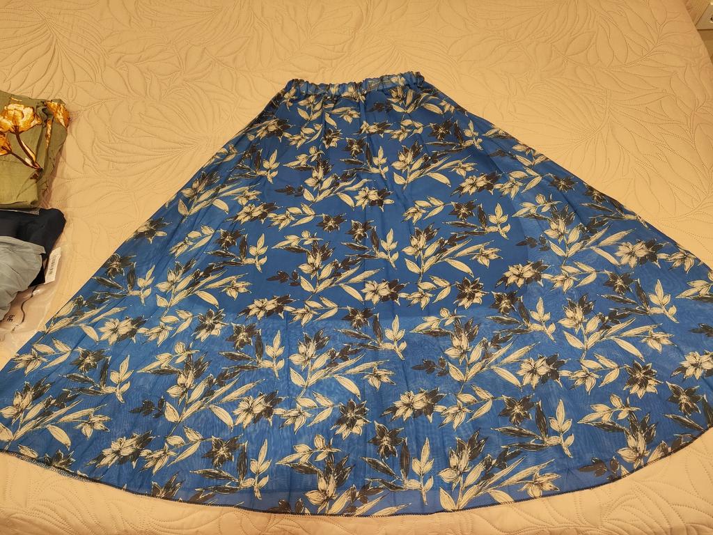 The skirt is beautiful, the fabric is high quality, although it seemed softer and flowier. I will wear it with pleasure. The size is just right for a waist of 110 cm.