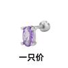 Purple Zircon Four-Claw Stud Earrings Screw Beads Temperament Small Personality Sweet Purple Diamond Oval Screw Earrings