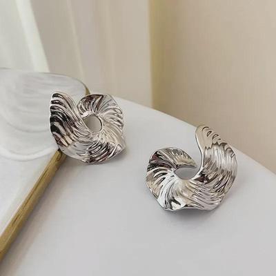 Unique High-End Irregular Metal Pleated Stud Earrings 2025 Design