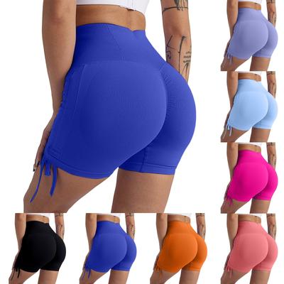 Women's Fashion Solid Color Wrinkled Hip Lifting Yoga Shorts Quick Drying Breathable Sports Fitness Tight High Waist Three Part Yoga Shorts