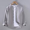 This men's casual jacket combines simplicity and comfort with its stylish design and high-quality materials. Crafted from a linen material blended with hemp, it offers a breathable and lightweight feel, perfect for everyday wear. The long sleeves provide added coverage, while the Chinese stand collar adds a unique touch to the overall design. Featuring a solid pattern and accompanied by a convenient pocket, this shirt effortlessly combines functionality with modern style, making it an ideal choice for any casual occasion.