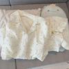 Women's Summer Cloud Cotton Pajama Set: Sweet Cute Cardigan with Short-Sleeved Top and Shorts.