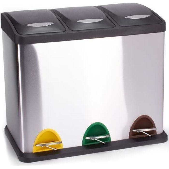 Msv poubelle tri sélectif inox 3 bacs 8lx3