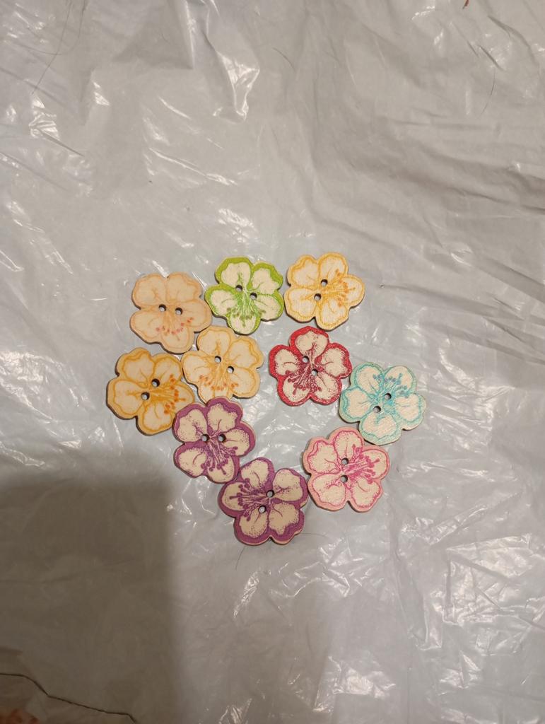 Small wooden buttons in the shape of flowers. Perfect for summer blouses made of linen, hemp, or batiste!