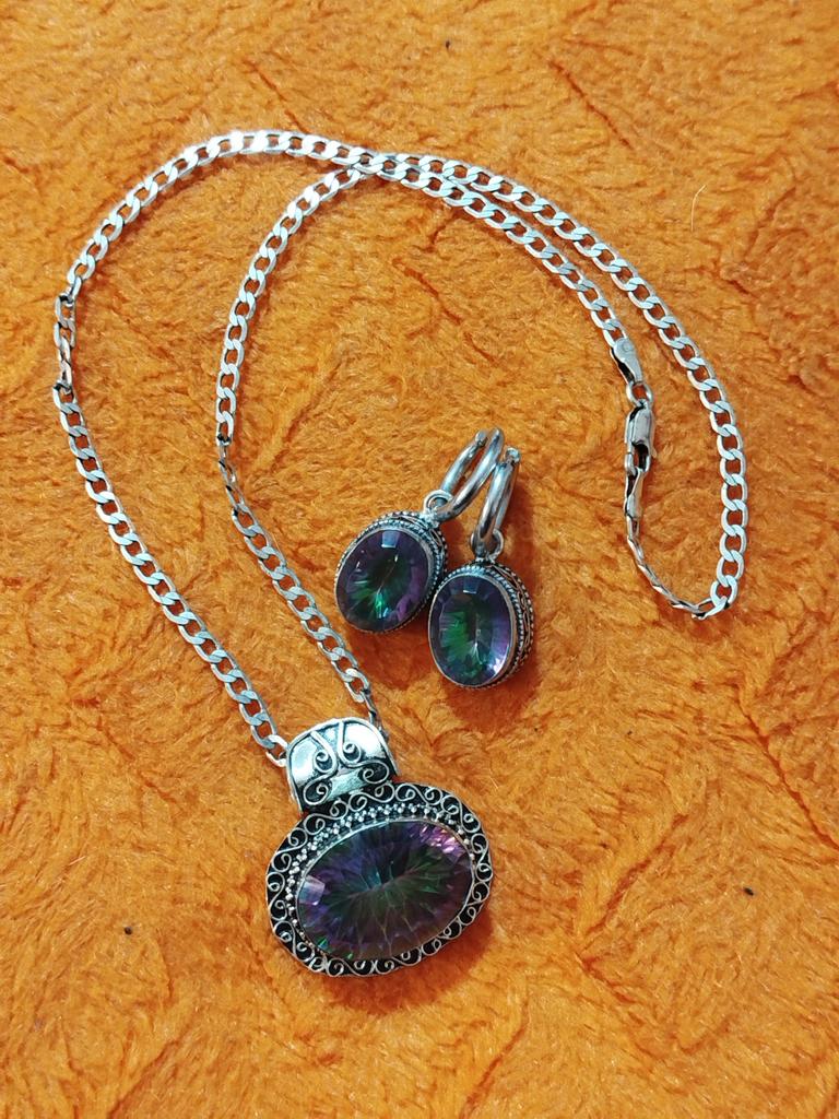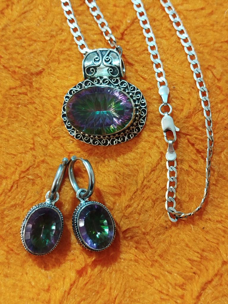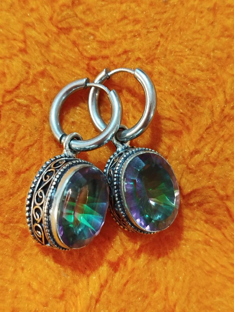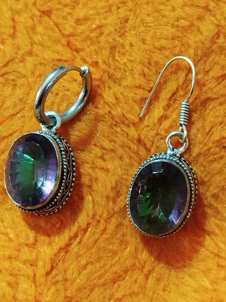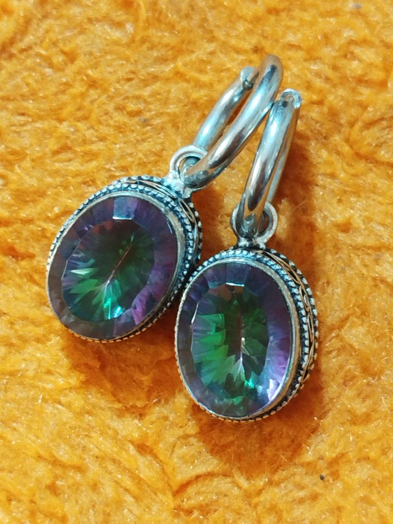 Mystic Topaz Handmade 925 Sterling Silver Jewelry Earring 3.7 R6R71
