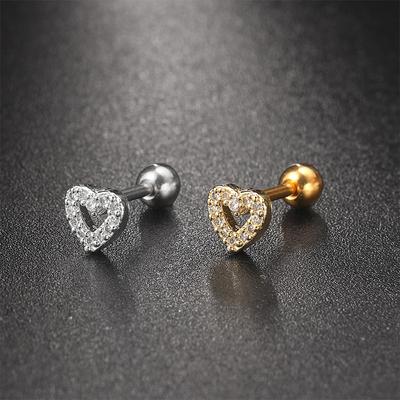 Stainless Steel Zircon Cartilage Stud, Helix Conch Rook Daith Ear Screw Piercing