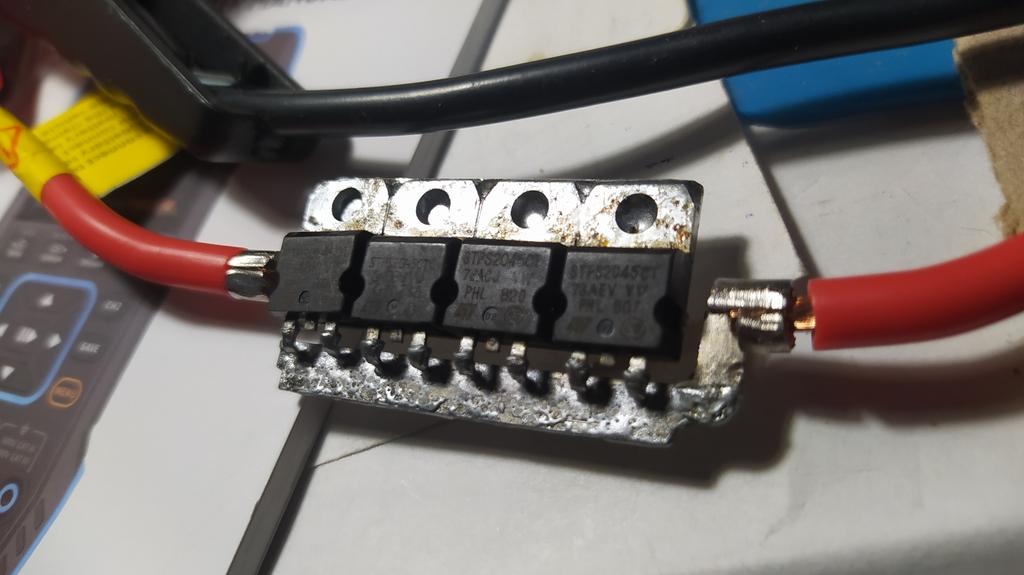 Haven't tried it yet. Tried with a 25 Ah AGM battery + a 65 Ah battery from 2019 from a car, didn't start, 3 times for 3-4 seconds. TDI 2 VW. Result: wires got hot, the casing melted, diodes remained working. Conclusion: Thicker wires are needed and 4 more diodes in parallel..