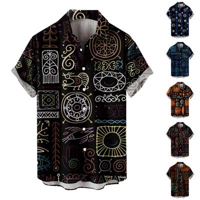 Men's Fashion Retro Printed Short Sleeve Shirt Men's Hawaiian Printed Shirt Retro Totem Print Men's Oversized Tops