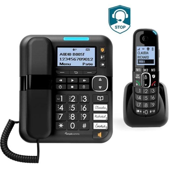 Amplified Corded Landline Phone +90db - Amplicomms 1580 Combo Duo with Answering Machine