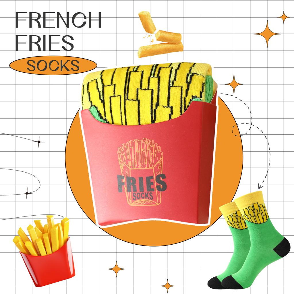 Pair of Mid-calf Unisex Socks In a Novelty French Fry Design, a Unique and Interesting Festive gift.Suitable for Easter