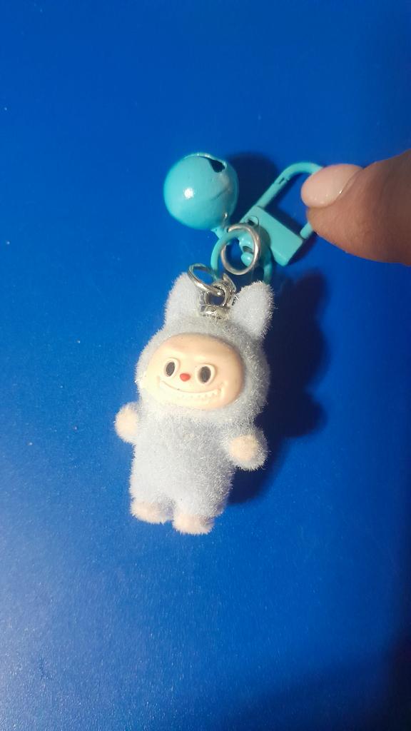 Light blue, wonderful little Labubu !!! 🥰 He comes with a carabiner and a round bell