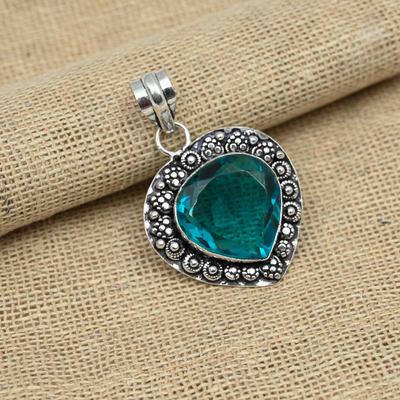 Pretty Blue Sapphire Lab-Created Gemstone Handmade 925 Solid Sterling Silver Jewelry Pendant