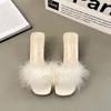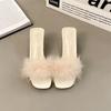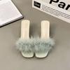 Mao Mao Slippers Women's Summer Outer Wear New Year's Thick Heel One-word Drag Crystal High Heel Cool Slippers